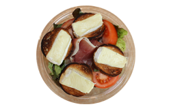 Salade, lardons, toasts, camembert chaud, tomates, jambon fumé.