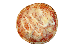 Sauce tomate, saumon fumé, crème fraîche, fromage râpé.